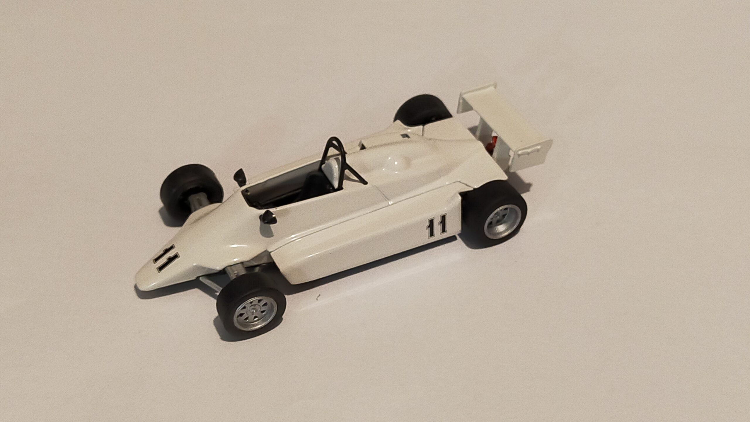 Voiture de formule 1 russe. La voiture soviétique 3CTOHNR-21 n° 11 présente une carrosserie majoritairement blanche aux lignes aérodynamiques et profilées. Le numéro « 11 », apposé sur le côté, souligne sa vocation de voiture de course.